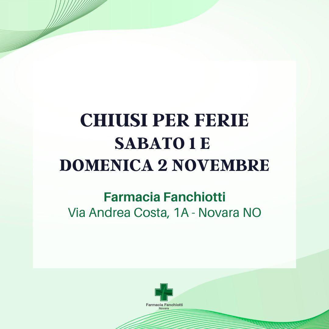 La Farmacia Fanchiotti è chiusa per ferie sabato 1 e domenica 2 novembre.